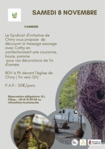 Le S.I. de Chiny et Cathy Jacob tresseuse de bouleau vous propose un atelier de tressage afin de préparer vos décorations de Noël.